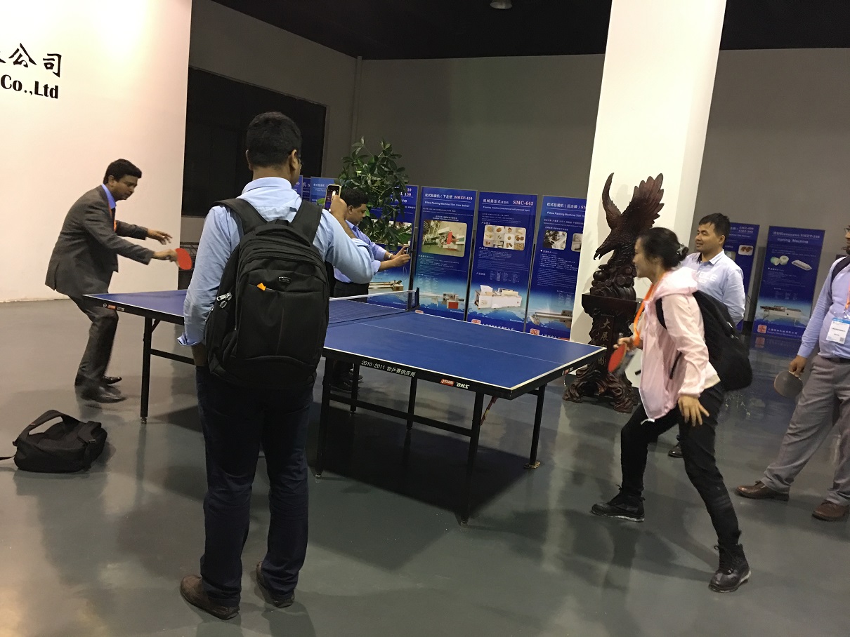 前幾天印度的業主第二行4人,來訪我機構,現場報道作過測試儀, 對讓我們的成型。機,膨化機,再生機這一成套防具很對勁,當他遇到讓我們的乒兵球桌時刻,濃厚興趣越高,不禁得露半個手,原本孩子 打乒兵球也挺利害的。