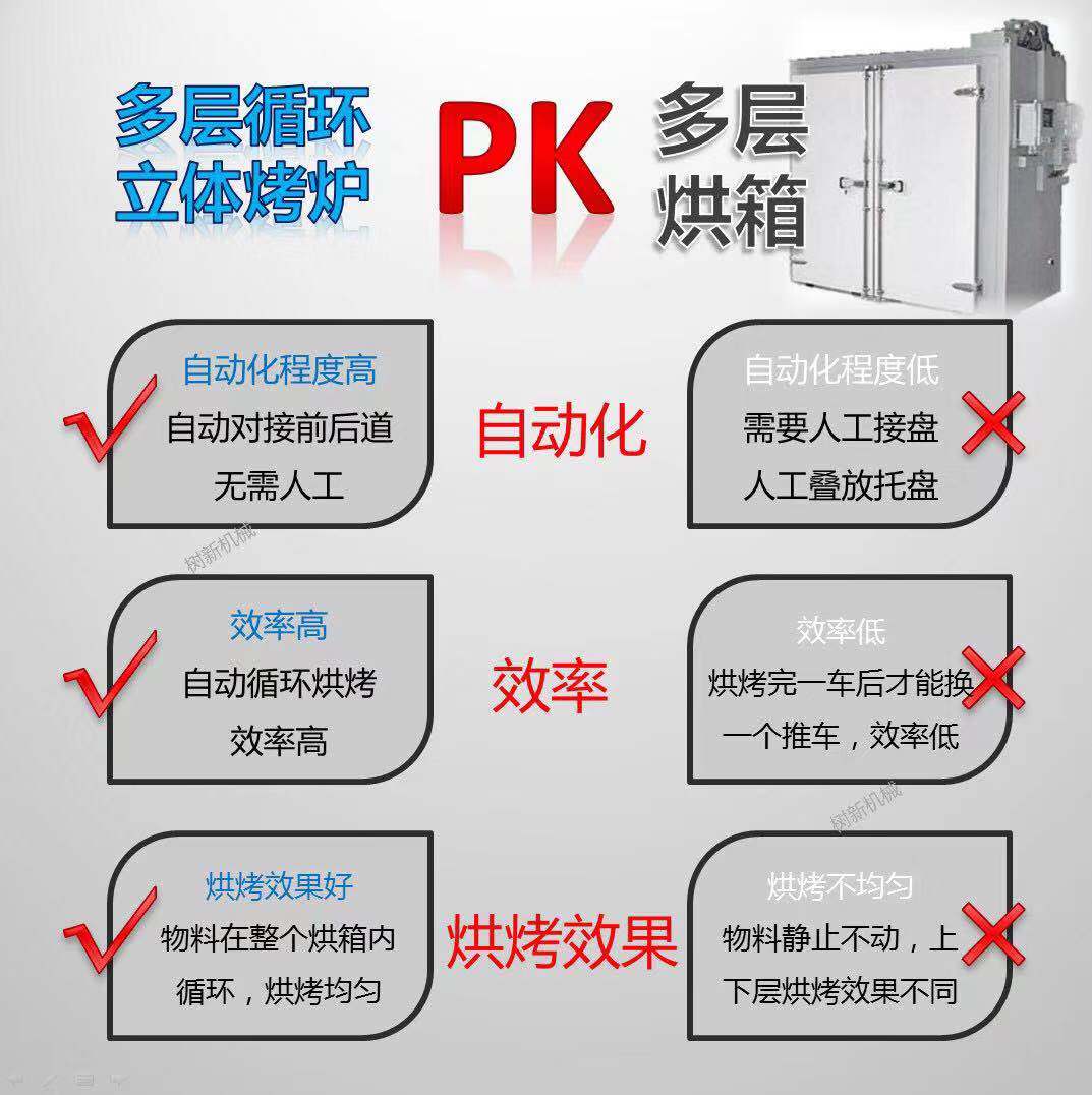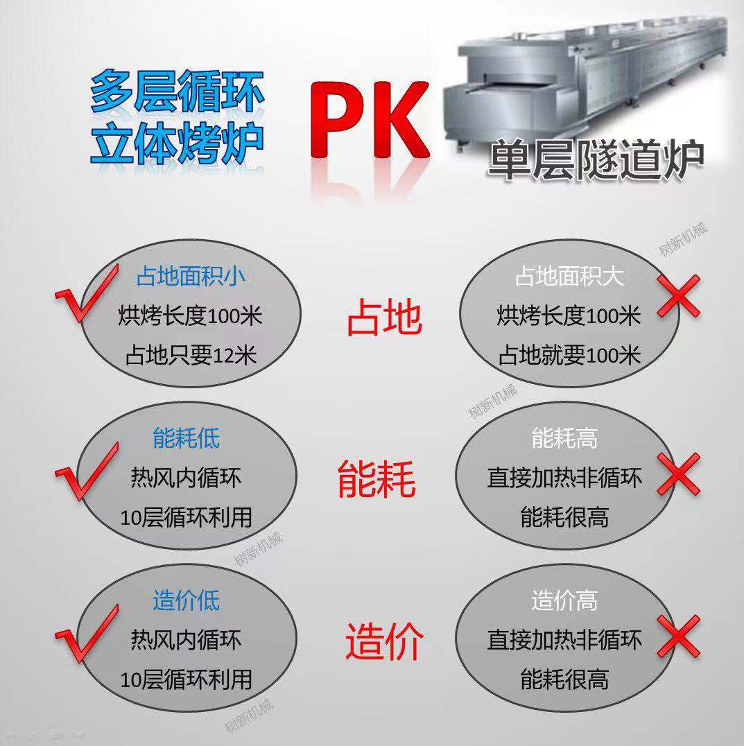 2.土地征用小:這套烘箱烤爐是我公司的布局設想,外部10層輪回,大大削減了占空中積。比方100米的輪回長度,占地才十多米。