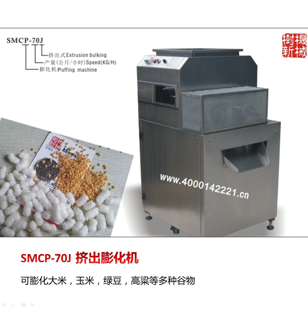 - SMCP-70J 擠出膨化機(米花機),可膨化大米、玉米、高粱、綠豆、黃豆等物料,現進級為全不銹鋼外殼! SMCP-50Q 氣流膨化機(米通機) 可膨化大米、小米、小麥、青稞、苦蕎、玉米、高粱、薏仁、蕎麥、豆類等含淀粉的物料.